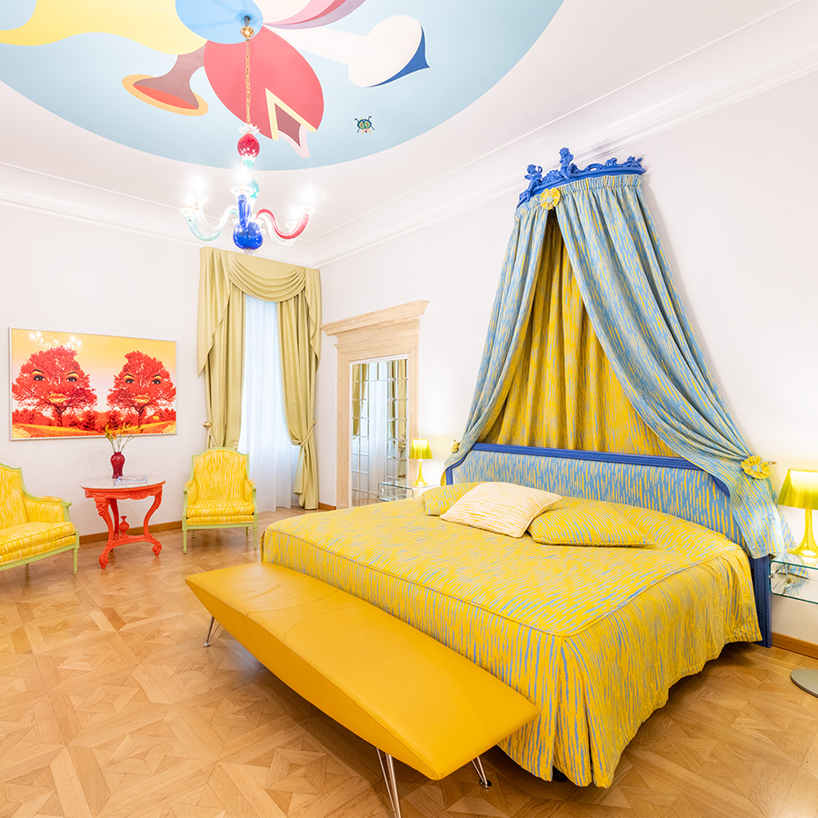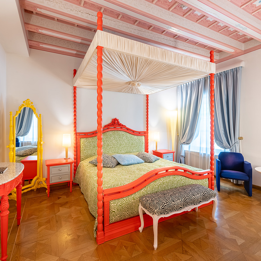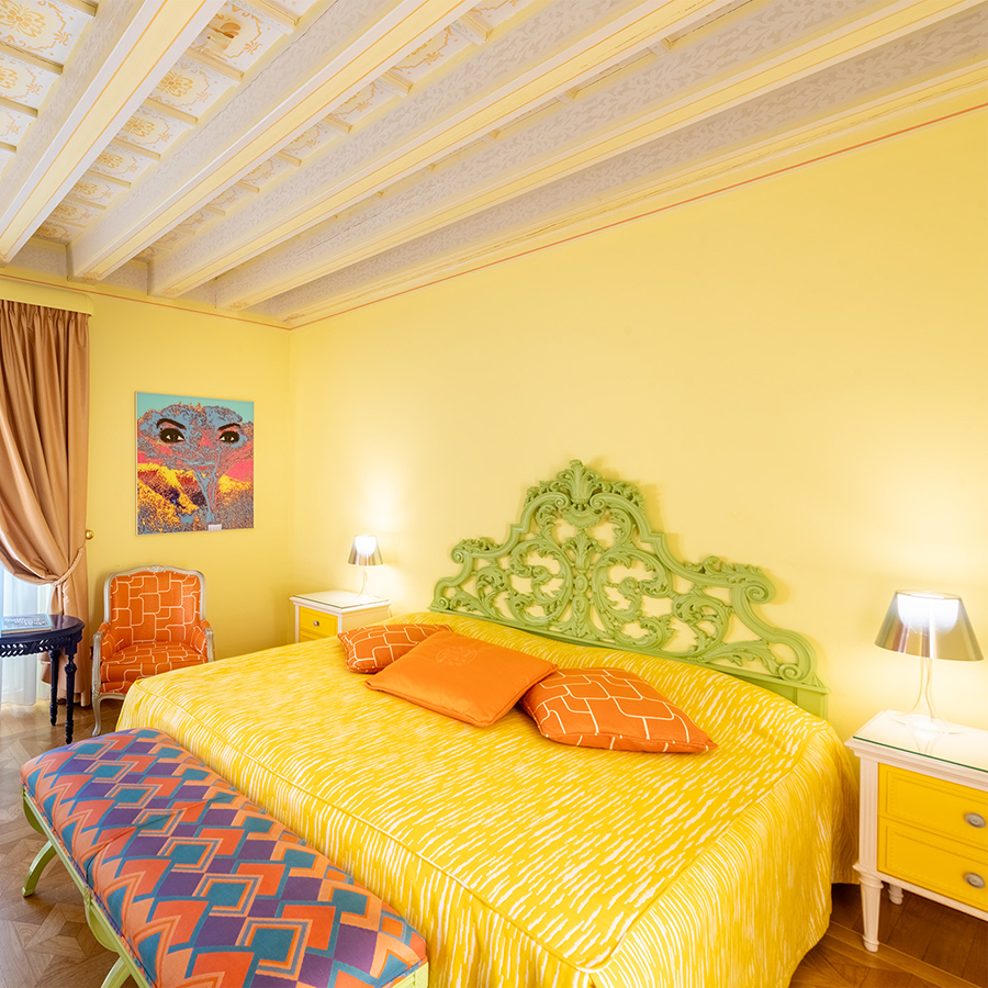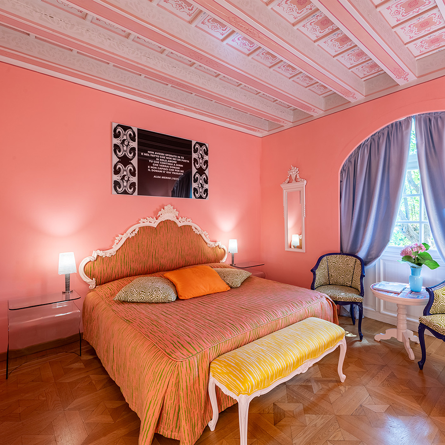 Ogni camera è un affascinante incontro tra stili, epoche e suggestioni: arredi d’autore, opere d’arte, elementi di design antico e contemporaneo convivono in armonia, esaltati da colori audaci e accostamenti sorprendenti. Opere uniche e dettagli ricercati danno carattere a ogni stanza, dove nulla è ripetuto e tutto è selezionato con cura.